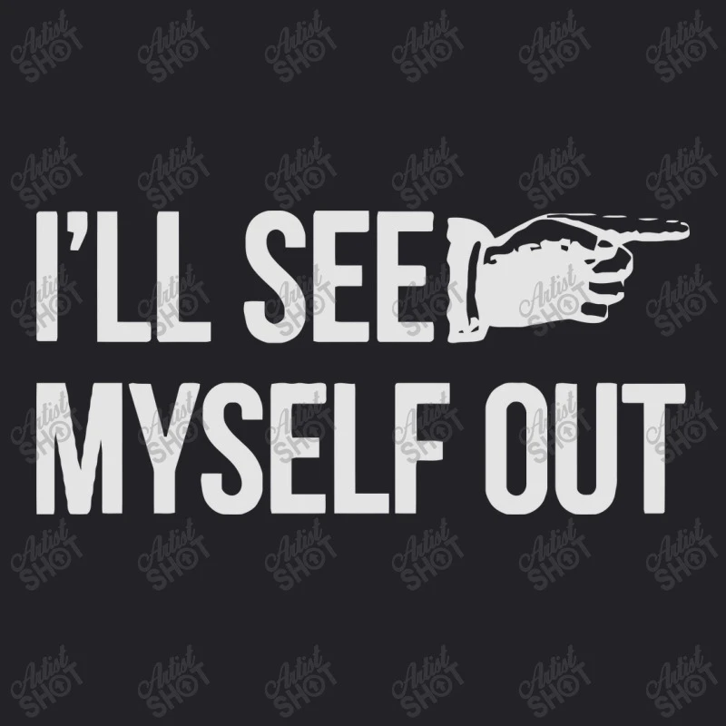 Digital printing is an amazing process that involves your artwork “I’ll See Myself Out” being processed by a computer and then printed directly onto the surface of your product. Digital printing is not a heat transfer or applique, as the ink directly adheres to the fabric of your shirt. Each printing process has its strengths, and our artwork team will weigh these when deciding which to use for your art.
